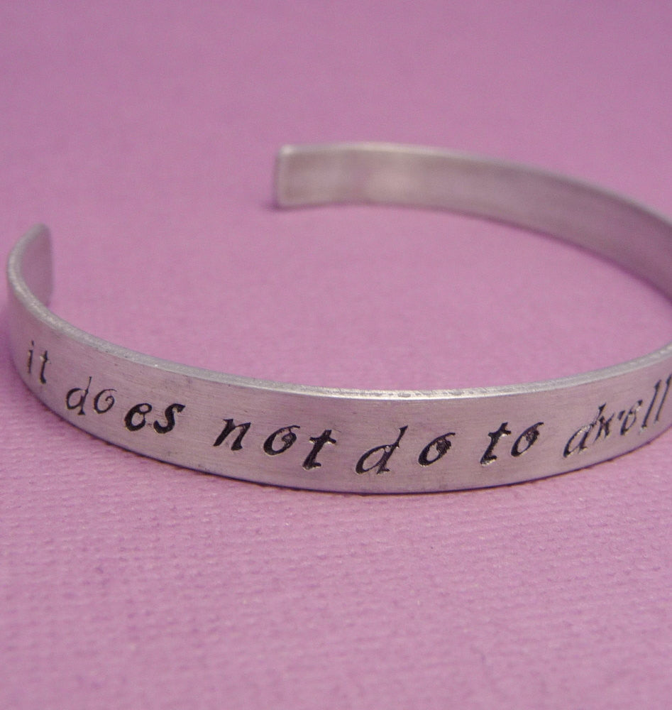 "It does not do to dwell on dreams and forget to live" - A quote from Albus Dumbledore in the Harry Potter books is hand stamped onto this beautiful cuff in my script font. A great gift for any Harry Potter fan.