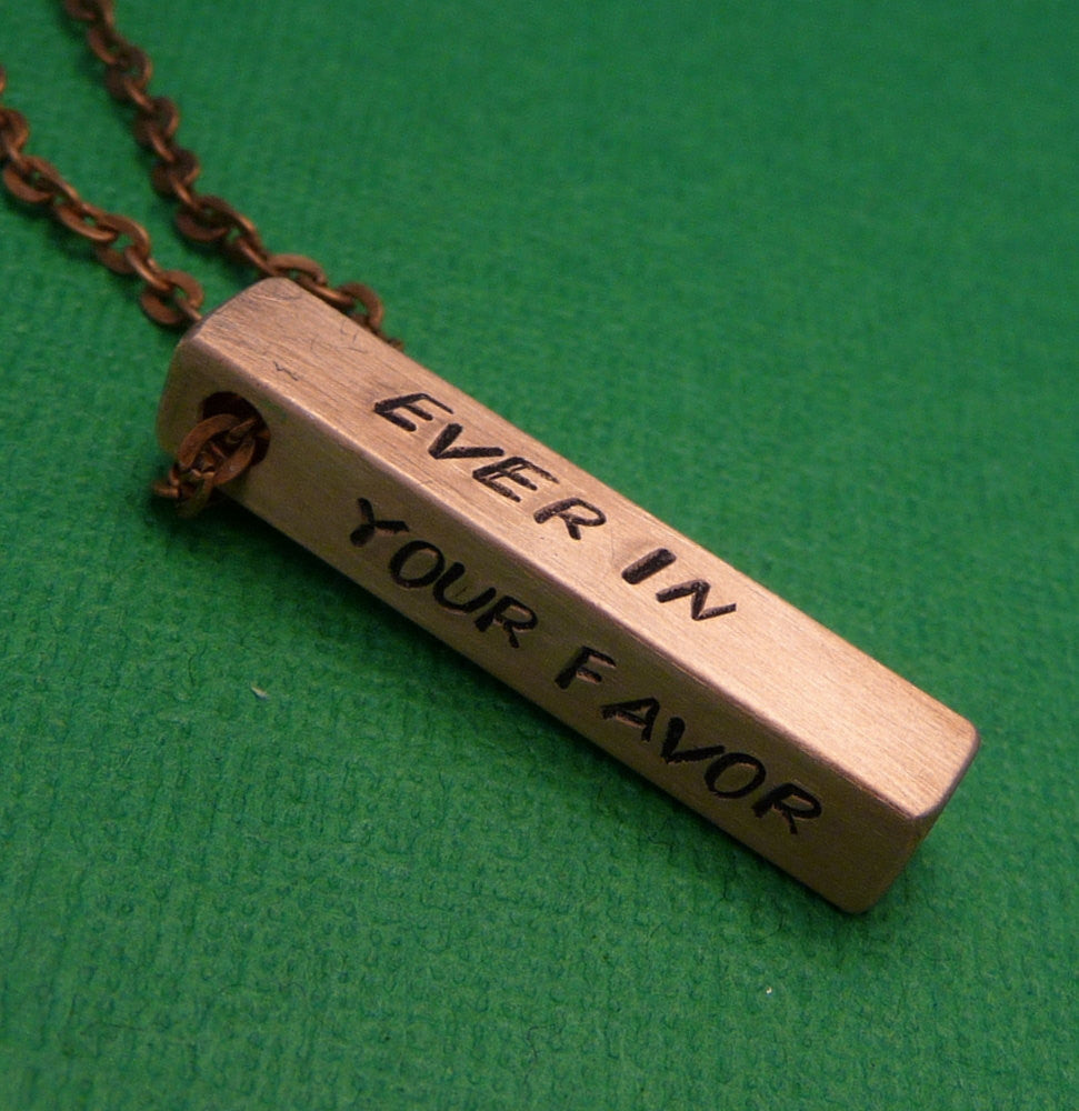 This lovely Copper bar is 1 1/4 inches long, and placed on a copper plated oval chain. Each piece is hand stamped by me on a made-to-order basis.