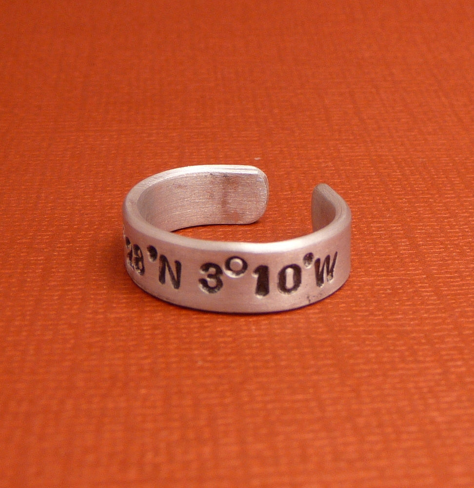 Latitude & Longitude Custom Hand Stamped 1/4" Aluminum Ring