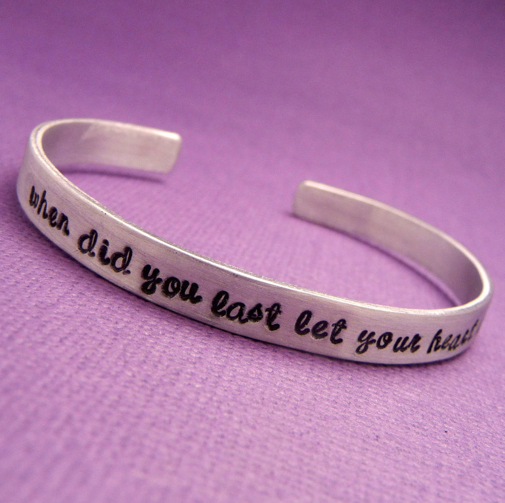 Aladdin Inspired - When Did You Last Let Your Heart Decide - A Hand Stamped Bracelet in Aluminum or Sterling Silver