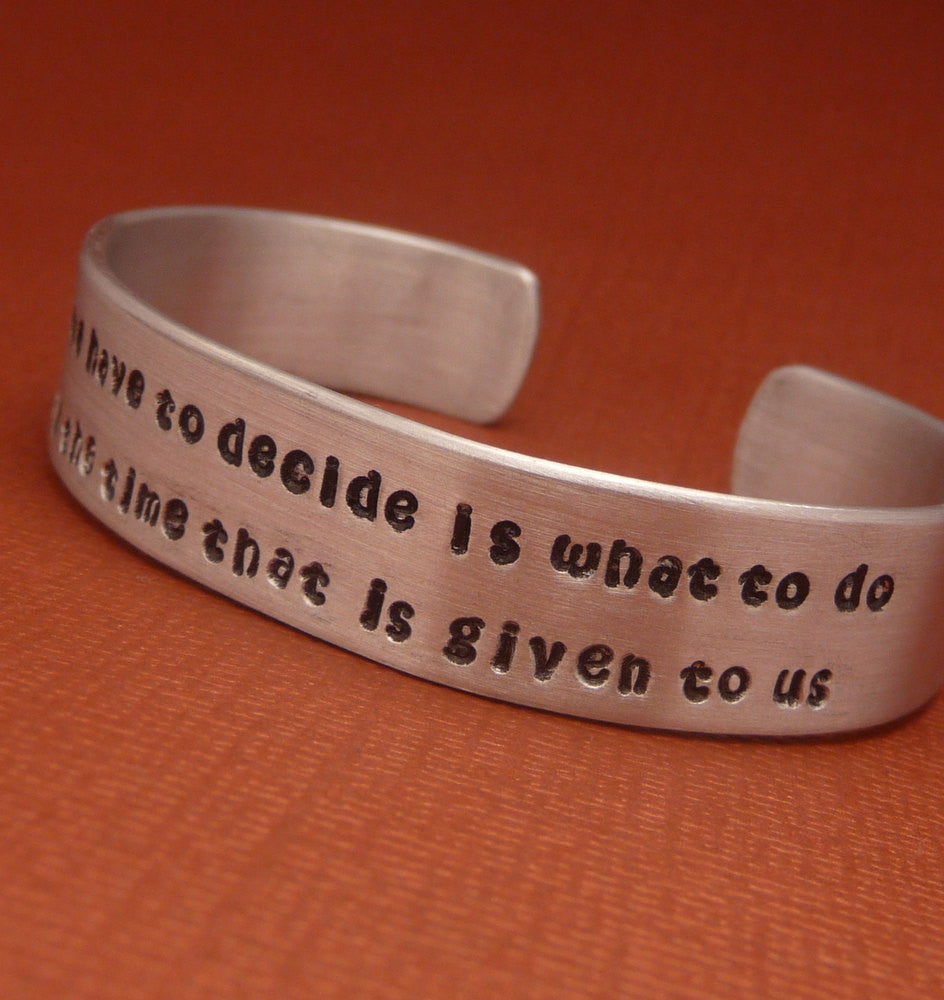 Tolkien Inspired - ...What To Do With The Time That Is Given To Us - A Hand Stamped Aluminum Bracelet
