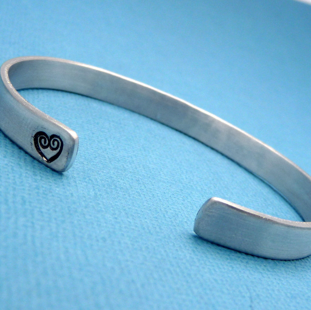 Inspired by what is easily the most beloved film to come out of Studio Ghibli, this bracelet is stamped in our Gandalf font, and accented with our swirl heart decorative stamp at the right edge of the cuff. A great gift for any Howl fan!