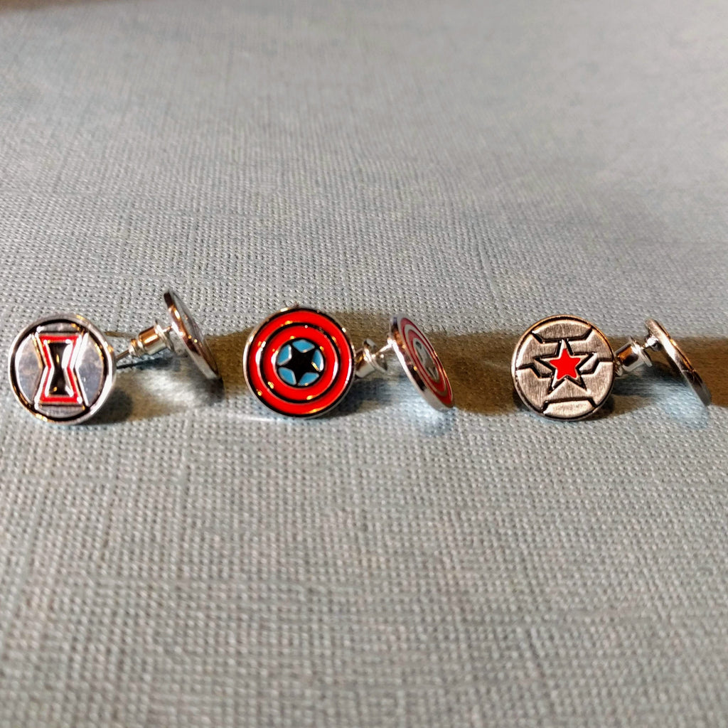 Choose your favorite Avenger Stud Earrings - a great gift for any MCU fan! Earrings available are the logos for Black Widow (Natasha Romanov), Captain America (Steve Rogers), or The Winter Soldier (Bucky Barnes).